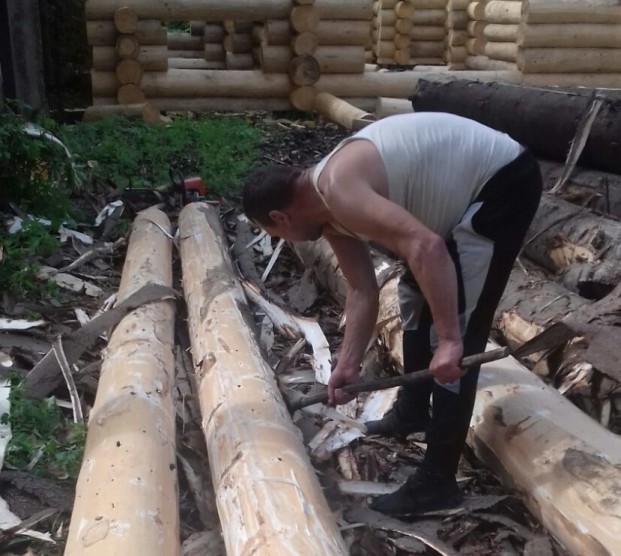 4. Log felling. Logs are cut and planed, grooves and bowls are selected. The whole process is done manually.